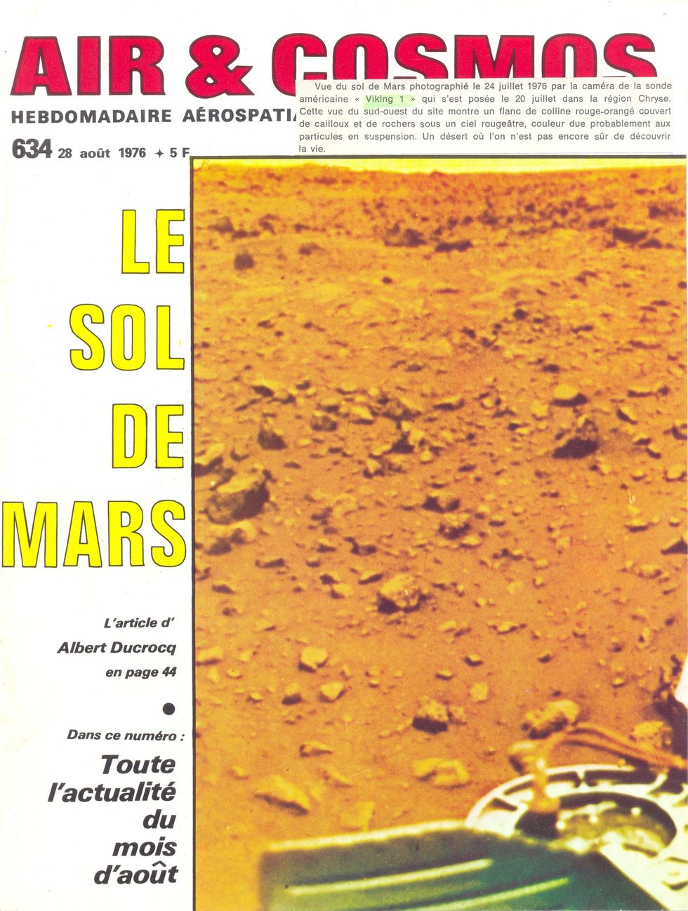 Viking 1 découvre la planète Mars, par Albert Ducrocq. Avec de nombreuses photos NB.
