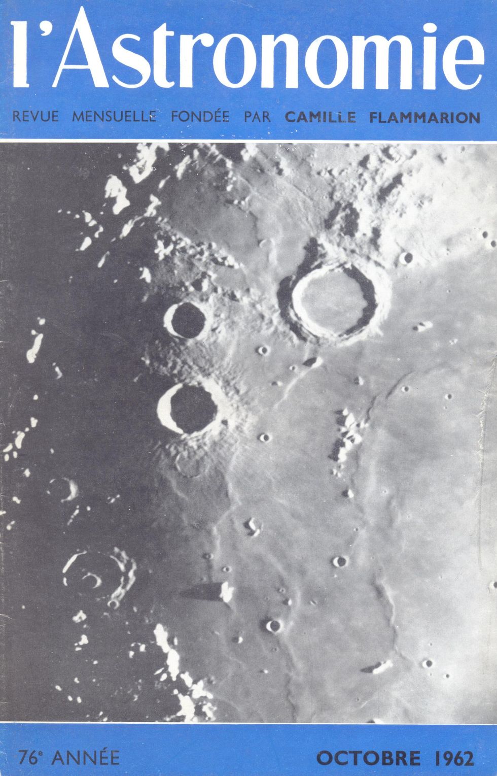 En couverture : Photographie de la Lune représentant une partie de la Mer des Pluies avec les cratères Archimède, Autolycus et Aristillus dont les diamètres mesurent 110, 60 et 40 Km .