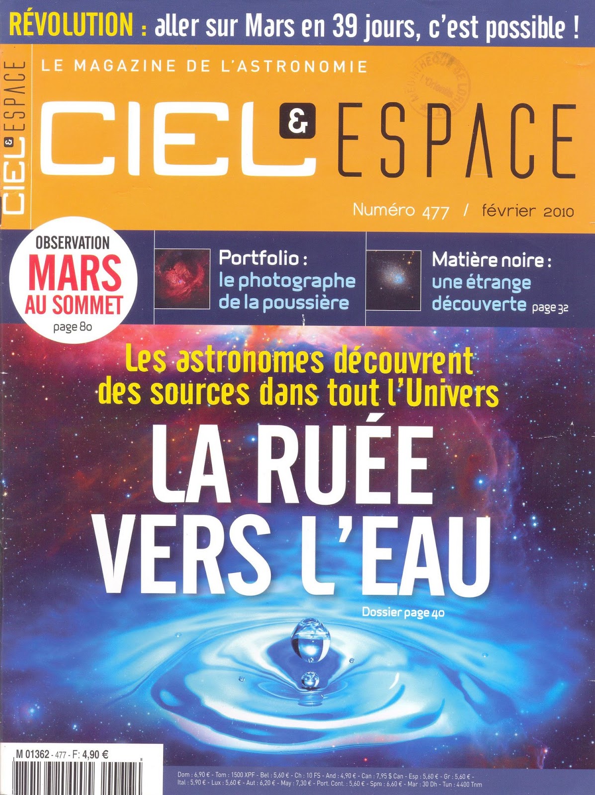 (quatre pages).Dans les brèves : Enfin une carte complète de Mercure; Deimos occulté par Phobos; Énigme au pôle Nord de Saturne; Pénurie de plutonium à la NASA; Ça roule pour SpaceShip 2; La NASA s'ouvre aux ados; Herschel sonde les pouponnières de la Rosette.
