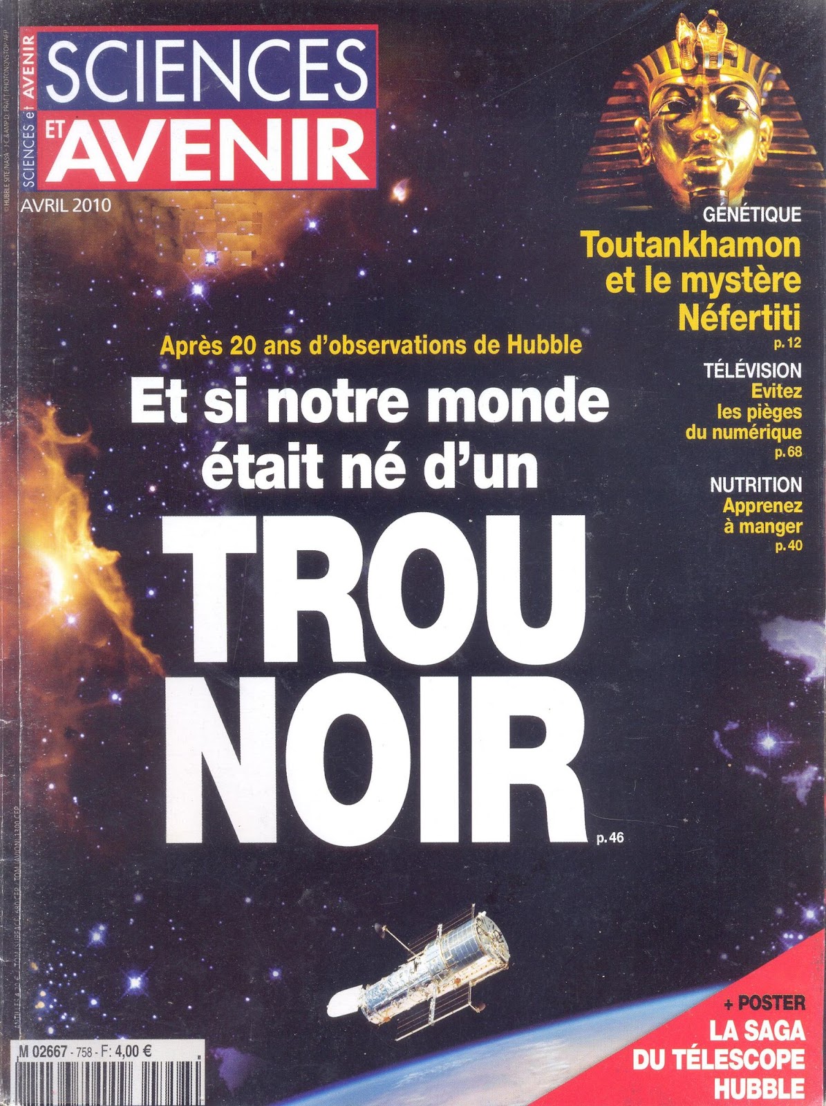 Dossier : Notre monde est-il né d'un trou noir ? Dossier de quatorze pages (plus un poster) réalisé par Sylvie Rouat, agrémenté de nombreuses photos prises par Hubble.
